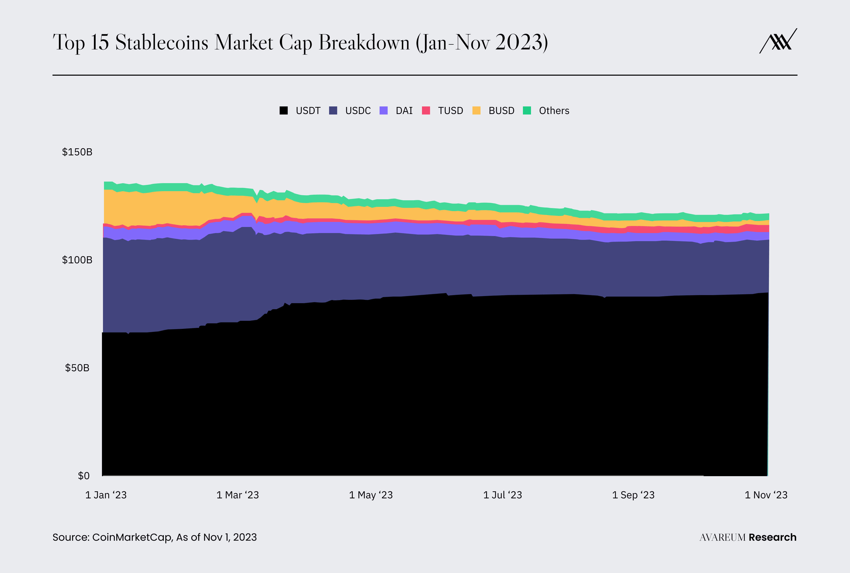 การเปลี่ยนแปลงของมูลค่าตลาดของ Stablecoins ตั้งแต่วันที่ 1 มกราคม จนถึง 1 พฤศจิกายน