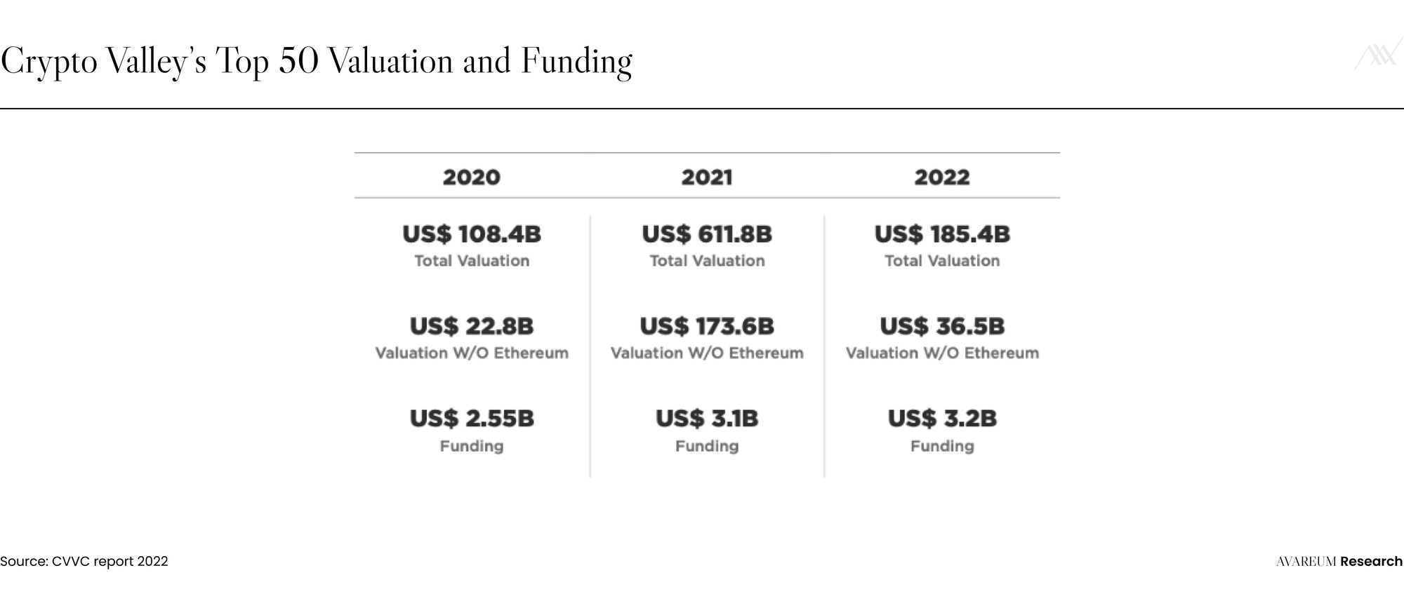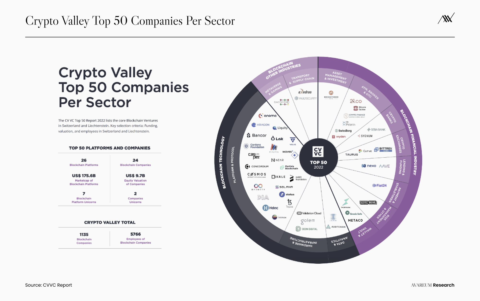 - บริษัท 50 อันดับแรกของ Crypto Valley มีมูลค่ารวม อยู่ที่ $185B ณ วันที่ 31 ธันวาคม 2022