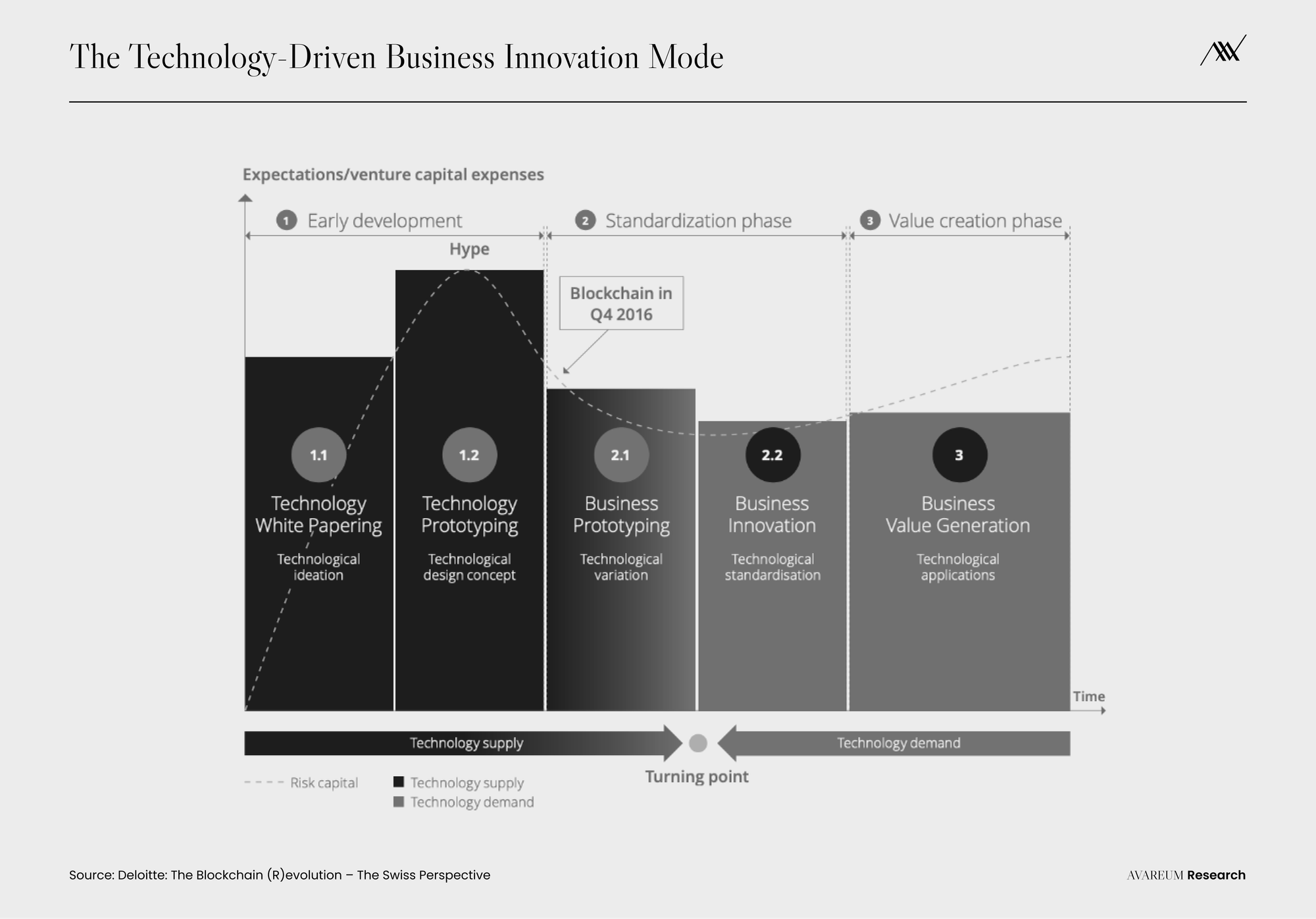 Geoffrey Moore อธิบายถึง Breakout Point ของ Innovation ต่าง ๆ ที่จะเปลี่ยนจาก Experiment สู่ Adoption ไว้ว่าเราจะได้เห็นการเปลี่ยนแปลงที่ชัดเจนมากยิ่งขึ้น โดยจะถูกนำไปใช้ในอุตสาหกรรมต่าง ๆ ไม่เพียงแต่โลกของการเงินเท่านั้น ในแต่ละอุตสาหกรรมจะมีการผสมผสานเทคโนโลยีดังกล่าวเข้าไปด้วย